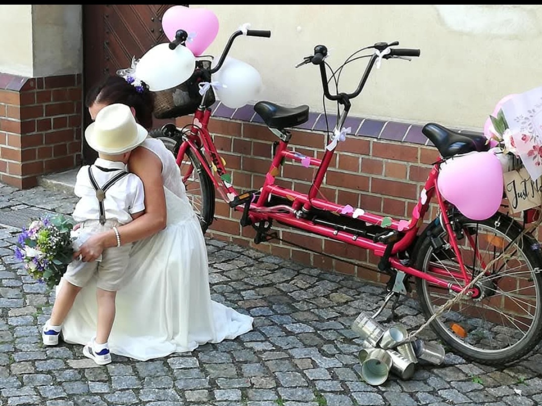 Für alle RadlerTypen eine gute Gruppen- Teamtag / JGA Gestaltung oder nur für die Hochzeits Paare ein Co-Pilot Tandem nutzen, wo die Braut vorn gut sichtbar vom Bräutigam als Chauffeur gut in Szene gesetzt wird ! Mit etwas Tandem Hochzeits Schmuck o. einer kleinen Seifenblasen mit Aufpreis möglich - die Schlechtwetter Version - mit einem Bj.66 AWE Wartburg 312er Limousine ist mit Aufpreis gegeben /das H. Tandem ab Preis 19€/Tag 5 Tandem Versionen incl. DDR + Holland Oldtimer Tandem